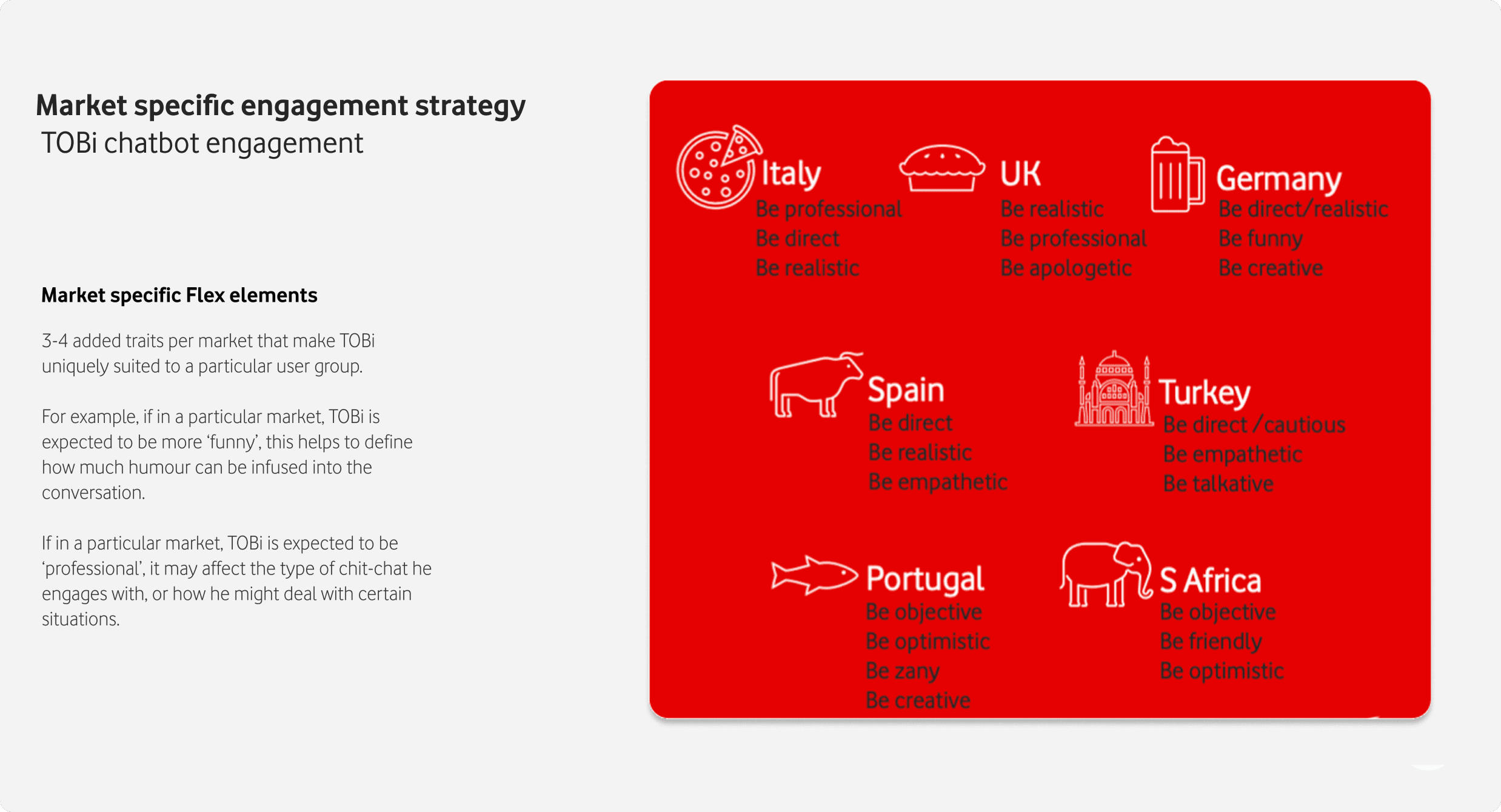 Vodafone Group designs for local markets—Vodafone UK, Germany, Turkey, South Africa, and 17 others across Europe and Africa. We created design systems, assets, and journeys that could adapt to fit different market needs. A lot of what we supplied markets was foundational and functional - but there was a big internal push to go beyond function and go into 'fun'.